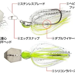 Siden fremkomsten af Chatterbait, ophavsmanden til den bladede jig i 2004, har erfaringen fra Seizo Shimizu, som har brugt den bladede jig i selve kampen i topkategoriturneringen, og åbningsspillet af 2014 FLW Tour & Bus Master Elite Series. Den bladede jig, der gennemborer kernen af den bladede jig, skabt ved at fusionere ideerne fra Mr. Bladed Jig og Brett Height, som opnåede to på hinanden følgende mesterskaber med den bladede jig som våben, kaldes også Jack Hammer.Det perfektionistiske engagement er ikke kun hjertet af bladet og hovedet, men også hoveddelene såsom kroge, gummiskørter og trailerholder, samt placeringen og størrelsen af klingehullerne. Den blev endda justeret i kommaenheder.Der blev lagt en dybdegående test og opmærksomhed på detaljer i Jack Hammer, herunder udviklingen af en ”Klar vibration, der overføres til din hånd”’ og en ” ‘Baslyd hvor bladet og hovedet kolliderer”, som var oprindelsen til navnet Jack Hammer.Den har mange funktioner, som alle er på højt niveau. Den drømme-superbladede jig, som du kan fange med overvældende brugervenlighed, det er Jack Hammer.Ultra-høj pitch rullende og slingrende handling med skarphed, der minder om træ-crankbait – effektiv til hård bas< /li>Kommuniker tydelig vibration til din hånd gennem stangspidsen – du kan forestille dig under vandet fra lokkets svømmeturKlingen og hovedet kolliderer med hinanden på grund af vibrationen og en stødbølge og lyd genereres – stærkt appellerende til den store basMeget let hentemodstand, der vælter den sunde fornuft, at ”stærk vibration=stærk trækmodstand”Fortsæt med at svømme ligeud uden miste balancen, så du kan genfinde den, som du forestiller digUstabilitet eksisterer side om side i en følelse af stabilitet – reagerer følsomt på kortvarige genhentningshastigheder og skaber en øjeblikkelig dart-handlingNår du rammer bunden eller struktur, mister du balancen og producerer en uregelmæssig handling i et øjeblik, for derefter hurtigt at genvinde det korrekte ct banen, som kan fremkalde et reaktionsbidFlad hovedform som en kastesten, der hopper på vandoverfladen gør det nemt at springe til bagsiden af udhængeneHold anhængeren godt fast med dobbelt wireholder selv til store trailere og hårdt brug – ingen stress for at rette skævhederTung wirekrog med en form, der er let at gennembore og svær at bøje, som ikke savner store fisk