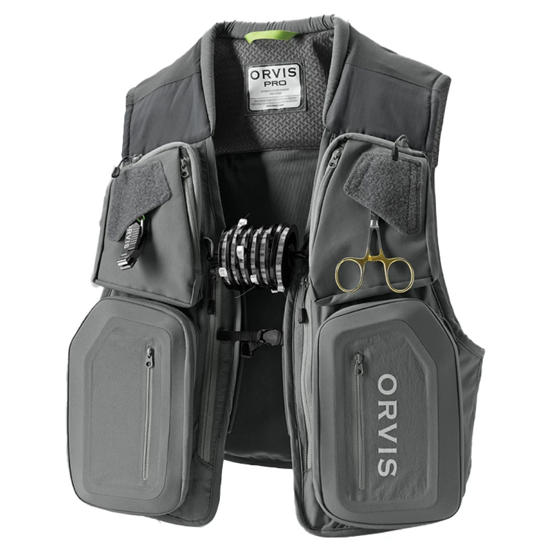 Det monterede design er bygget til at passe til kroppen. Skuldrene har et loftet afstandsnet af nylon og spandex. Der er 18 lommer—10 udvendige, 6 indvendige og 2 bageste ergonomisk designet med nye materialer for at give organisation kombineret med en jævn arbejdsgang på vandet. De to nederste hovedlommer tilbyder kompressionsstøbt konstruktion, der tilføjer stivhed. De øvre lommer er mellemstore, begge med Orvis-tilpasset skjult værktøjsport under to fluetørringsplastre. Baglommerne tilbyder en stor pass-through-lomme i spilstil under en baglomme med fuld lynlås og mesh-paneldeler. Andre funktioner inkluderer flere daisy chain gearløkker, elastiske løkker til at fastgøre tippetstænger, en justerbar lukning, der glider lodret for en brugerdefineret pasform, polstret krave for komfort, intern gjord-ophængningsløkke og en tri-rings netholder centreret på det bageste åg. Skal: nylon. Krave og underlomme: nylon/spandex. Øvre indvendig mesh: polyester. Nederste indvendige mesh: nylon/spandex. Støbt lommebund: kompressionsstøbt EVA. Vaskbar. Importeret.Shell: nylon. Krave og underlomme: nylon/spandex. Øvre indvendig mesh: polyester. Nederste indvendige mesh: nylon/spandex. Støbt lommebund: kompressionsstøbt EVA. Vaskbar. Importeret.Størrelser M(38-40), L(42-44), XL(46-48), XXL(50-52). 17½ oz. i medium.• Moderne ergonomi, materialer og innovative funktioner• Let slidstærkt nylon med en DWR-belægning• Tilpasset design er bygget til at passe til kroppen• Interiør med stretchnet• Skuldre har et forhøjet afstandsnet af nylon og spandex• 18 lommer—10 udvendige, 6 indvendige og 2 bagpå• Kompressionsstøbt lommekonstruktion, der tilføjer stivhed• Overlommer begge med Orvis brugerdefineret skjult værktøjsport• To fluetørringsplastre• Flere indvendige strækmesh-lommer med let adgang• Elastiske løkker til at fastgøre tippetstænger• Justerbar lukning, der glider lodret for en tilpasset pasform• Polstret krave• Tri-rings netholder