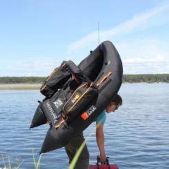 Elementet er V-formet, vejer cirka 15 lbs (6,8 kg) og har to farvekodede indvendige luftkamre for nem oppustning. Denne model tilbyder et bredere skumsæde end Seven Bass Bolt. Der er to stangholdere på bagsædet og et åbent opbevaringsrum bag sædet, ideel til diverse fisketilbehør (lille køler, pannet osv.). Clipline-systemet er designet til at forankre løst udstyr med snore og sikre lastsidetasker.Ydeevnemateriale:De har indbygget en PVC-bund for at minimere risikoen for punktering fra undervandsfarer. For forbedret synlighed er der en sikkerhedsflagholder og lyse orange accenter.Lommeforklæde:Eksklusivt lommeforklæde gør det bekvemt for lystfiskere at beholde deres lokker og tage sig af det væsentlige tæt på. Den lave lomme med dobbelt lynlås passer til et udvalg af små grejkasser.Clipline: Opbevaring vil ikke længere skade din støbeteknik. CLIPLINE-systemet er en sikker linje, der løber langs siderne af flyderøret, og er designet til alsidighed. Placer CLIP cargo-sidetasker, hvor du finder det passende for maksimal komfort.Længde 165 cmBredde 112 cmØ luftkamre 34 cmVægt 6,8 kgMax. belastning 136 kgBund: PVC 1000DTop: Crodura 600DLuftkamre: 0,45 mmKlipline: JaStangholder: 2Ventiler: Boston