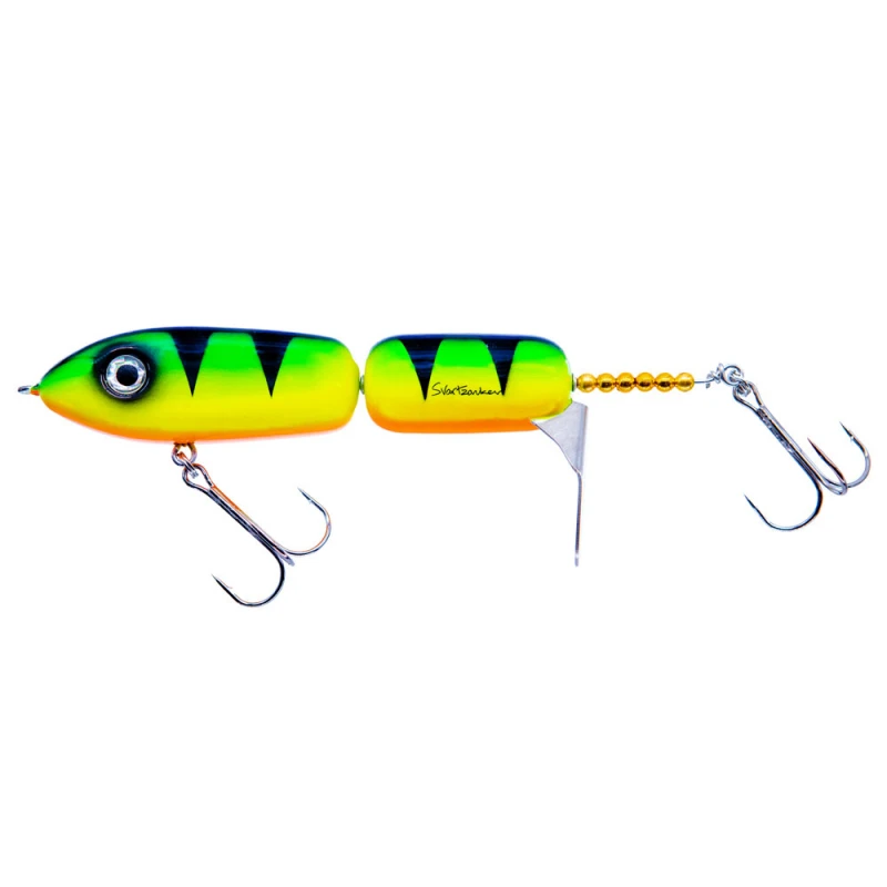 The Plopping Kelly er opkaldt efter Svartzonkers ældste datter og formen er inspireret af den klassiske McTail. Ploppende Kellys let rystende handling driver store fisk til vanvid. Det er en let hentet topvandslokke, der løber lavt i vandet for bedre krogsætning i enhver hastighed.Bevæbnet med overdimensionerede kroge, og den er lavet til at klare enhver form for seje rovfisk . Perfekt tunet lige ud af æsken med en kraftig klinge i rustfrit stål.”Få din… den mægtige ploppende topvandshandling venter på dig.- Vægt: 95 g / 3,2 oz- Længde: 15 cm / 6″ krop i alt 19 cm / 7,5″ lang- Kroge: Oversized heavy duty 4/0 rund bøjet krog- Højkvalitets flad rustfri stål splitring for overlegen styrke- Solid ABS-skumning – Håndmalet- 1,6 mm tråd gennem rustfrit stål- Kraftig klinge i stanfrit stål